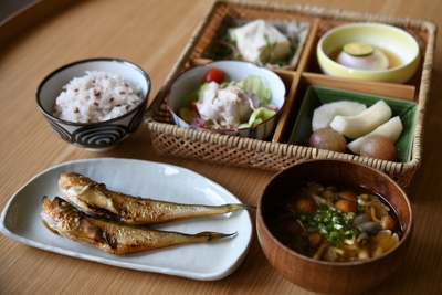 プラン一覧 > 朝ご飯と外湯めぐりを楽しむプラン[朝食付] 焼きたての地魚一夜干し、炊きたてご飯、お味噌汁